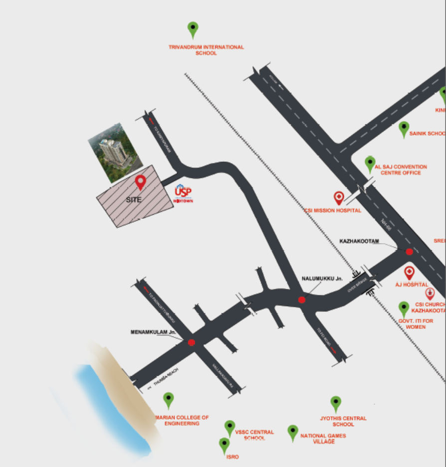 In recent years, Trivandrum, the capital city, has been rapidly growing, driven by the IT park and the upcoming Vizhinjam Seaport. This growth has led to many new developments, including those by Bhima Urbanscape Properties. Buying an apartment in Kazhakoottam, a peaceful and well-connected area poised to be Trivandrum’s fastest-growing spot, is a wise choice. Now, it is the perfect time to invest in USP MidTown and make your dream home a reality!